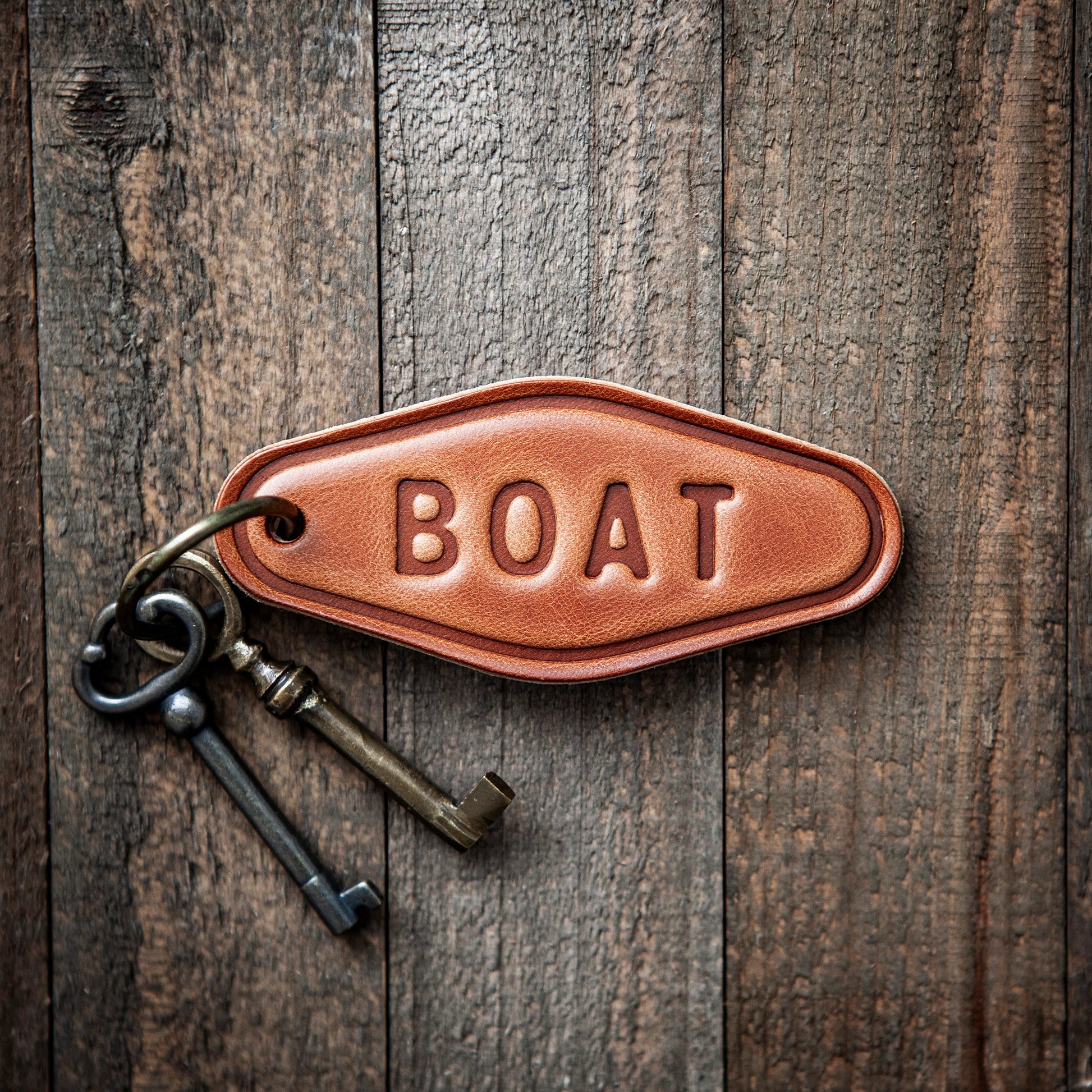 These leather keychains are cut and pressed by hand from some of the thickest and finest harness leather available, and patina beautifully as they age.