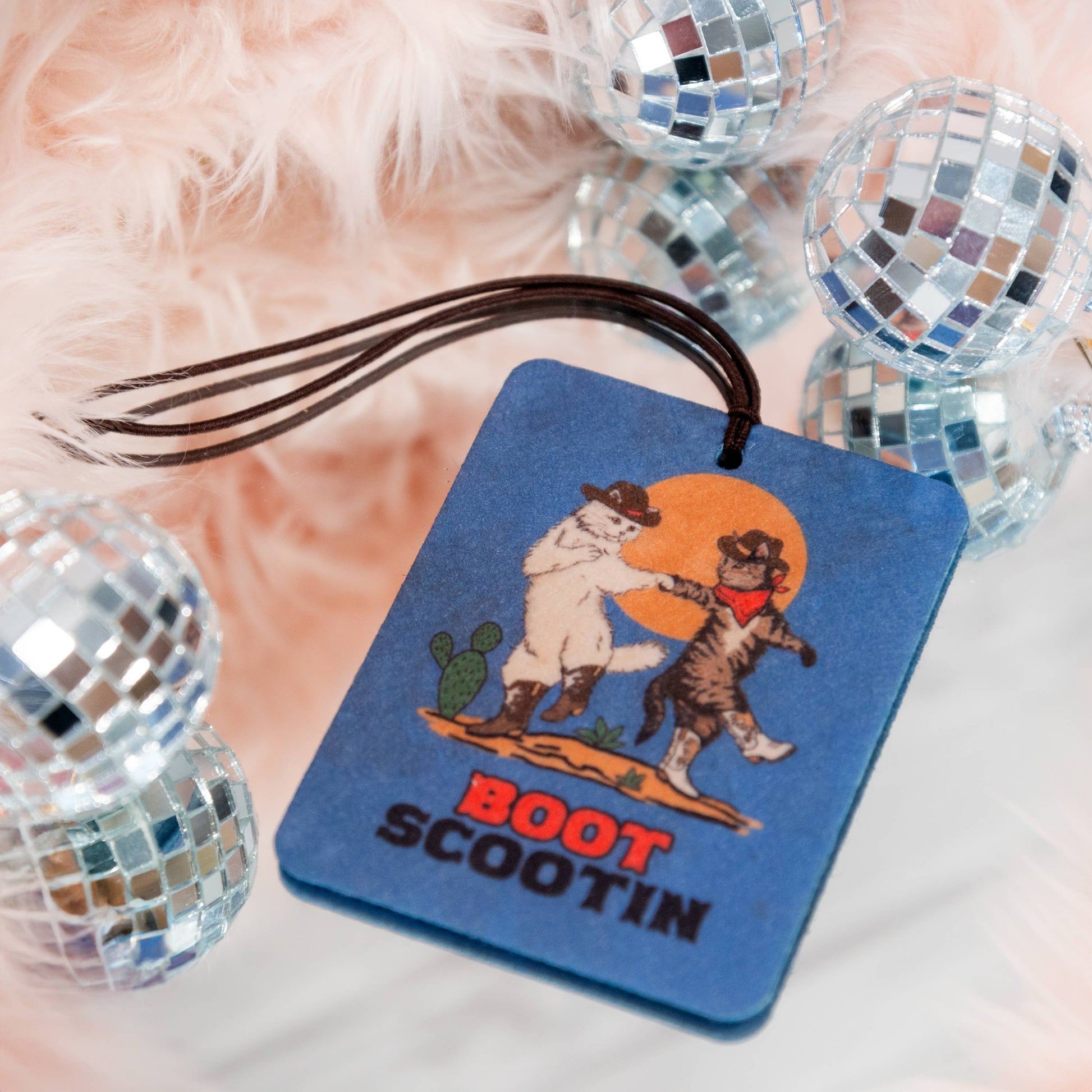These air fresheners are perfect to add some spice to your car! The band is elastic for easy hanging. The design is on the front and the back. The scent is funky fresh which is a warm blend of willow, magnolia, and cedarwood with musky undertones. It is made with organic oils. Air fresheners are reusable. Once the scent fades, simply spray with your favorite organic oils or perfumes.