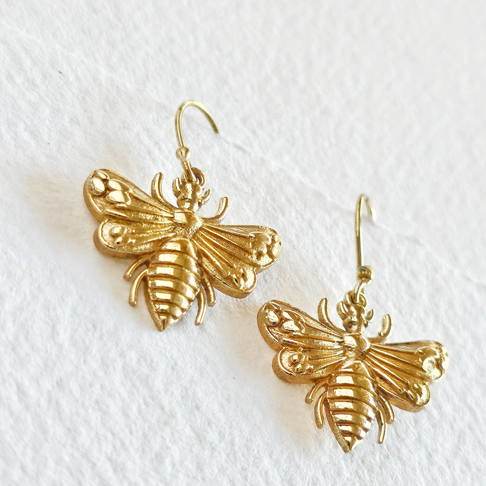 Solid brass handcrafted bee earrings. Great detail, handcast & handmade.