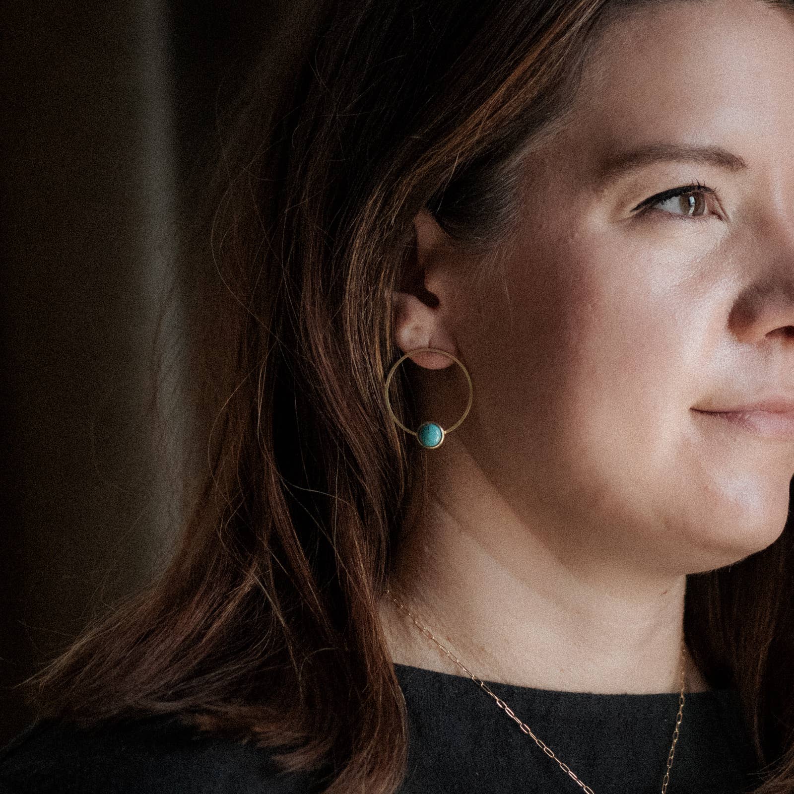 Brass Circle Turquoise Front Hoops