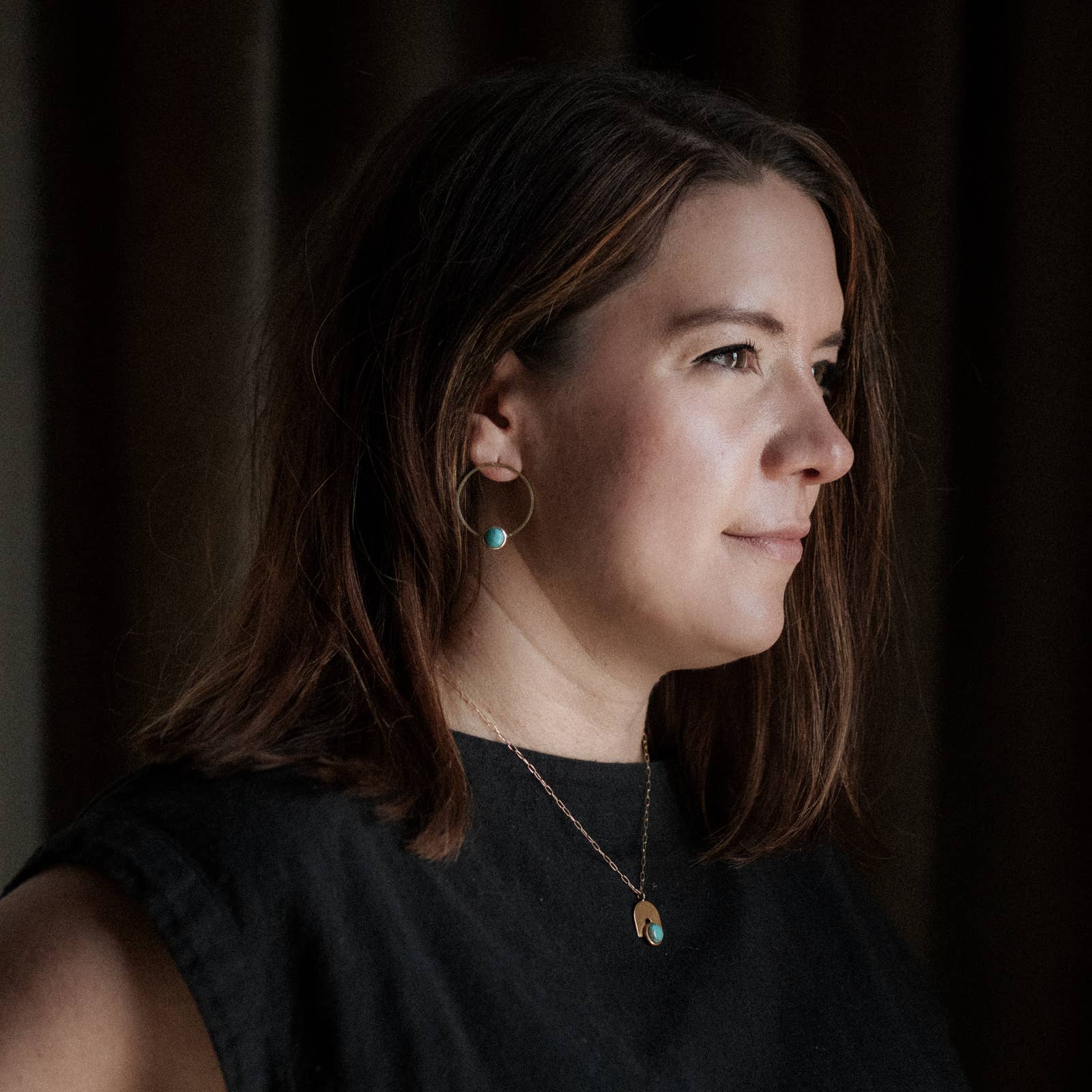 8mm bezel set turquoise pieces sit on solid, 38mm hand hammered circular brass pieces. All soldered by hand and connected to sterling silver stud posts.
