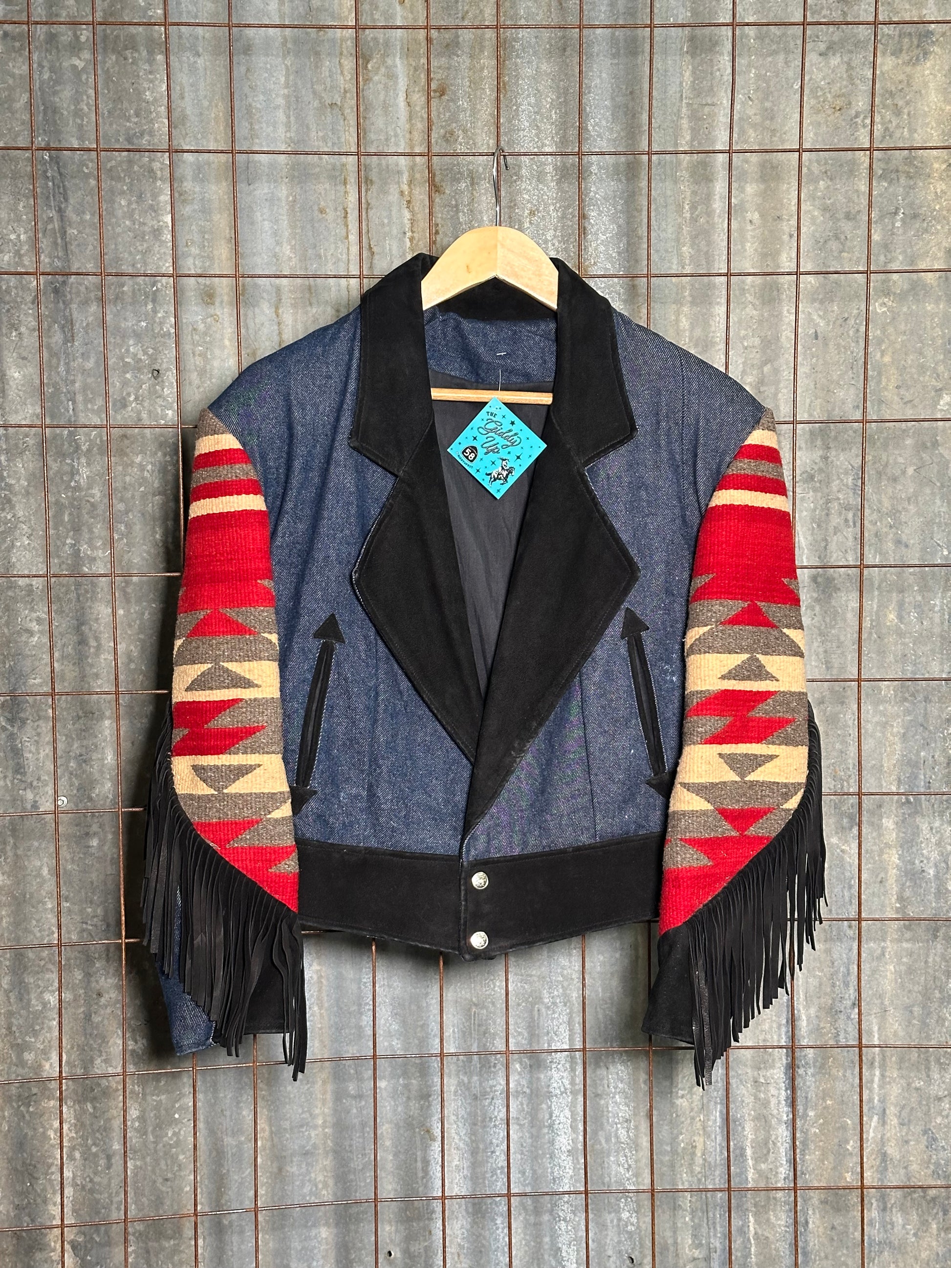 Vintage Handmade Denim Fringe Suede Woven Jacket
