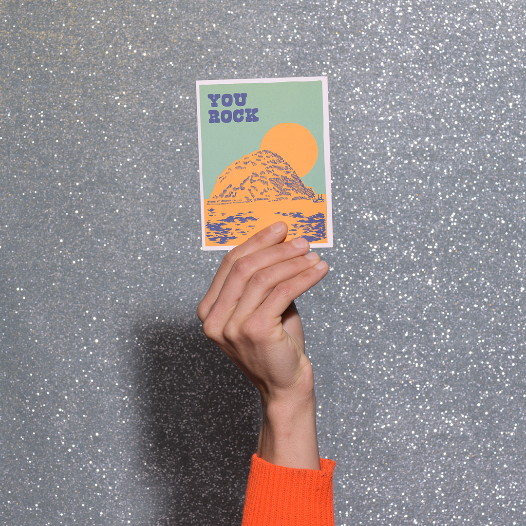 Blank inside. 100lb heavyweight card stock. Offset printed. 5.5 x 4.25 inches.