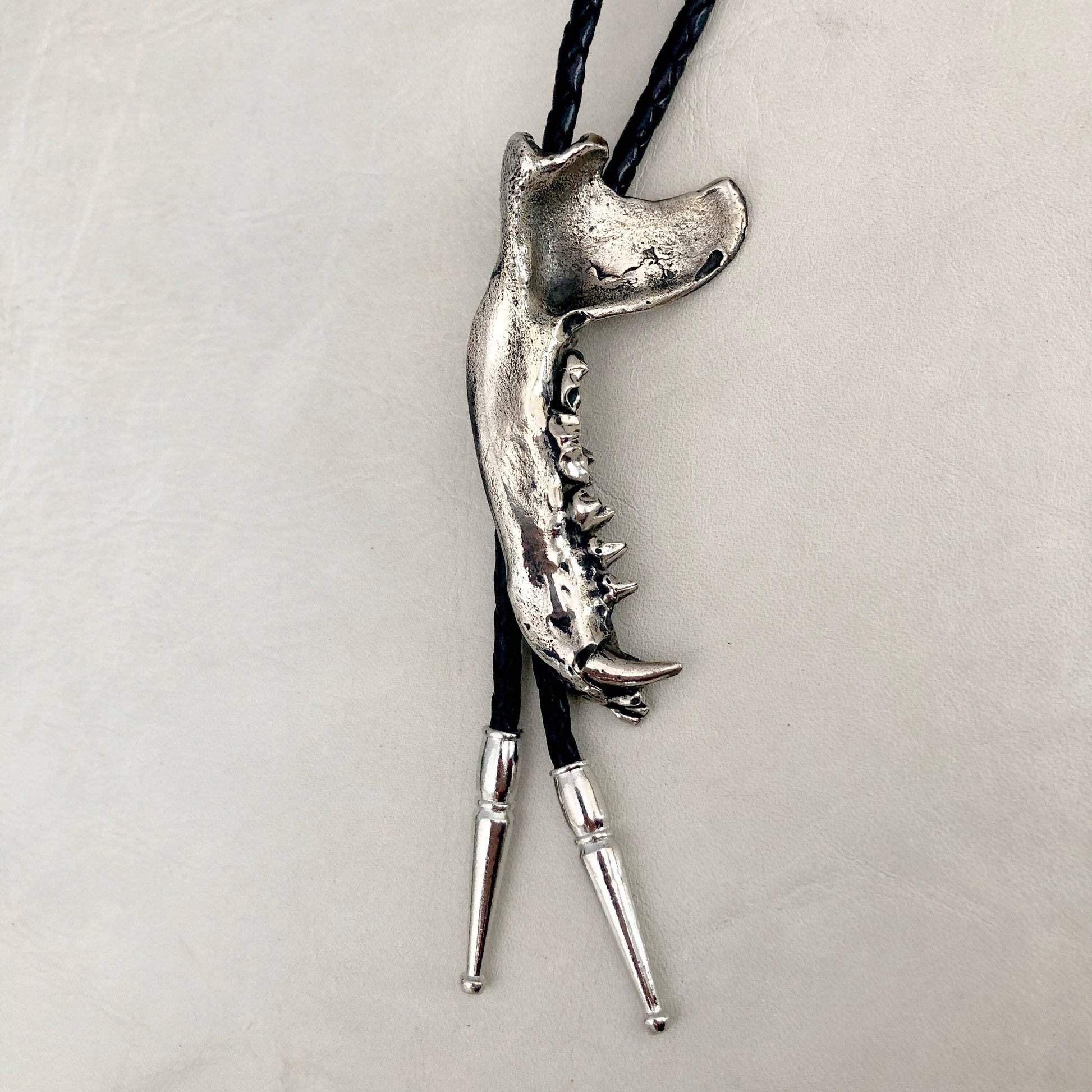 Coon Jawbone Bolo Tie White Bronze