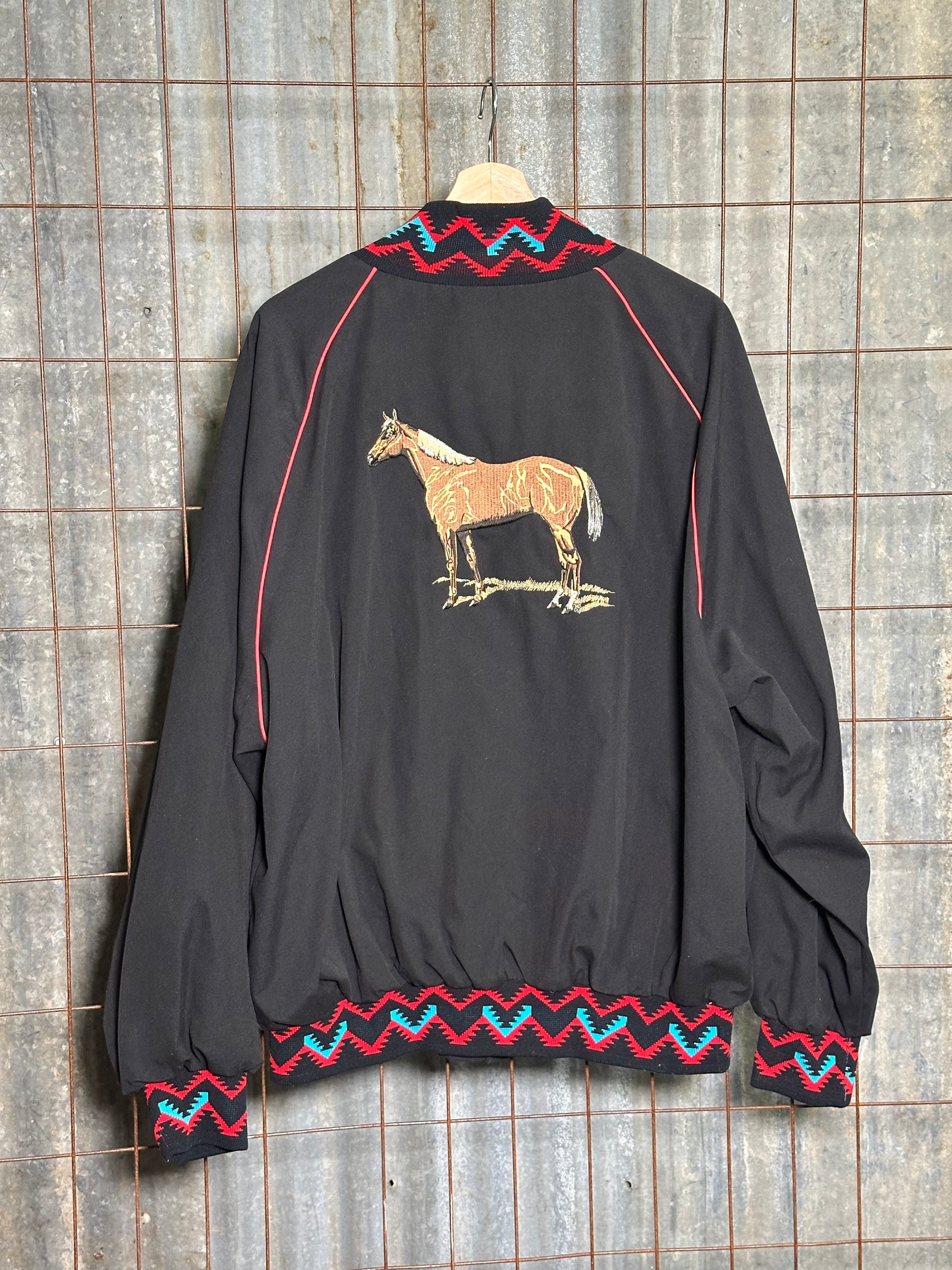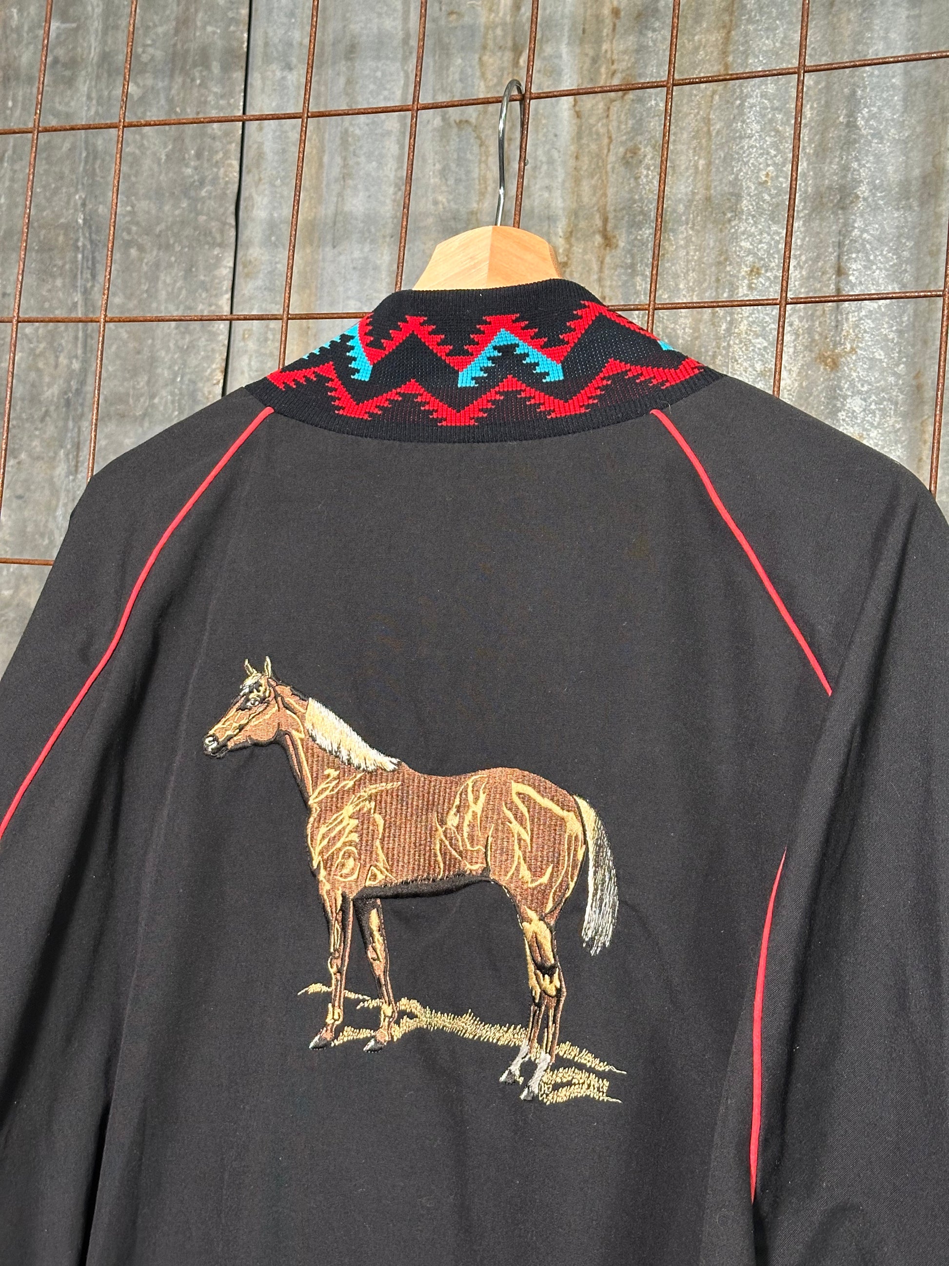 Vintage Black Aztec Embroidered Horse Sport Jacket
