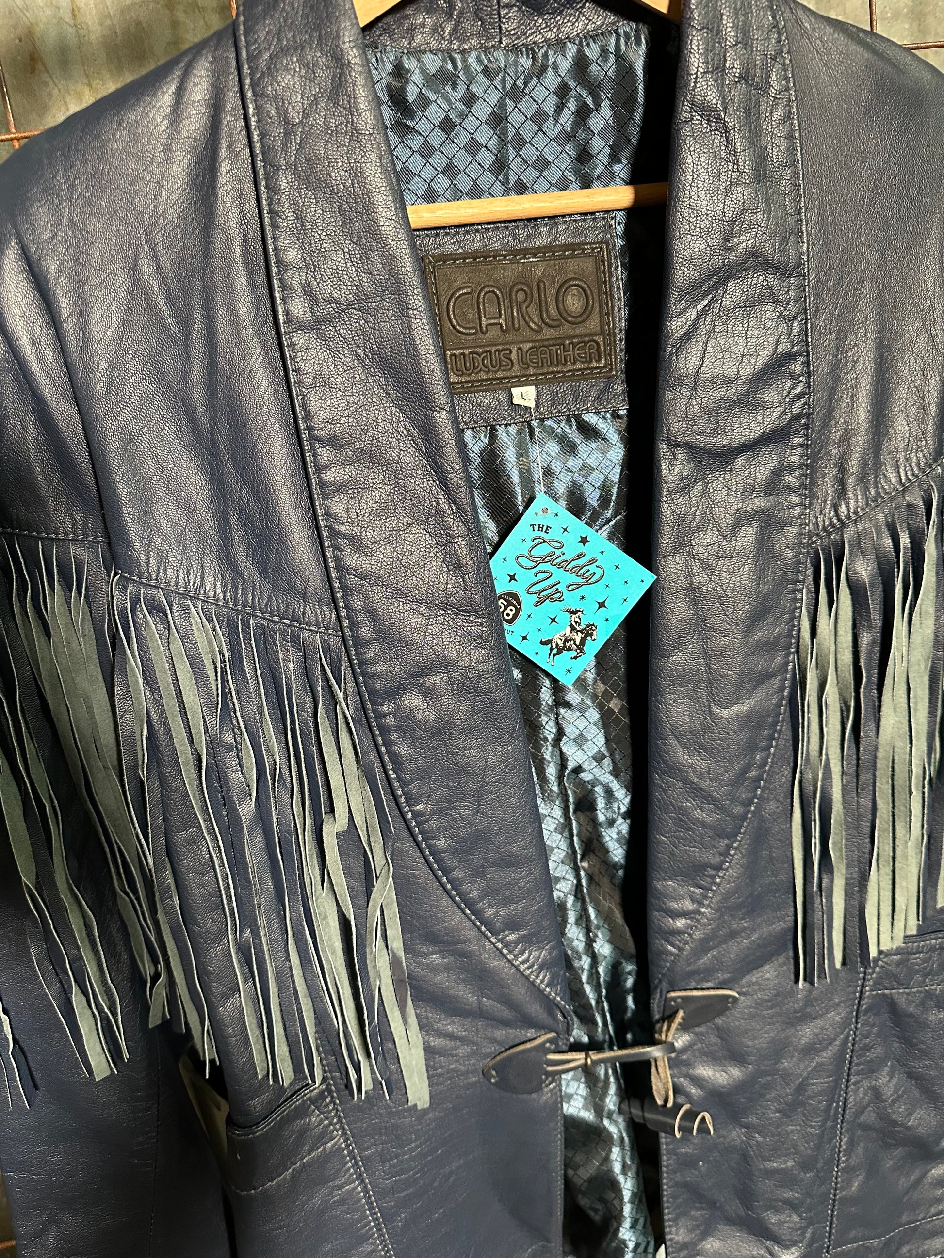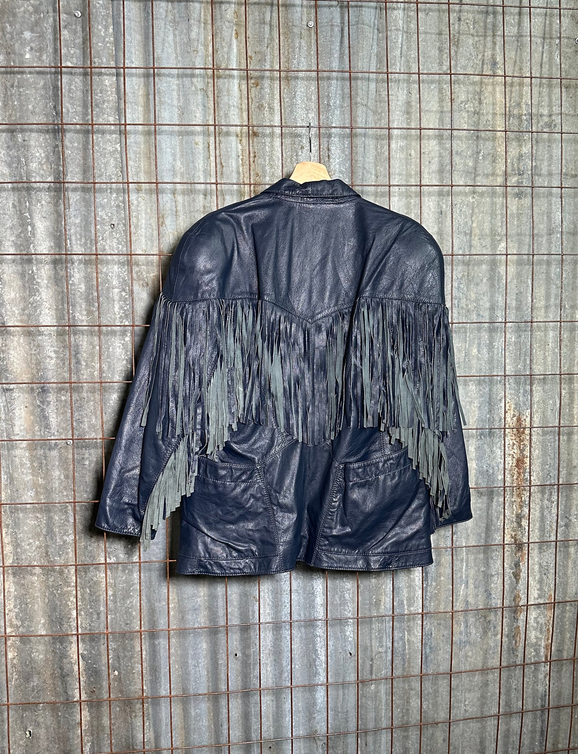 Vintage Navy Blue Fringe Leather Jacket